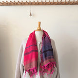 Japanese Extra Soft Woven Wool Cotton Scarf - Small - Hot Pink, Navy Blue, and Coca