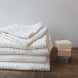 Another luxurious option to elevate your bath routine. The Kontex Lattice Linen Towel Collection is a refined, three-dimensional blend of linen, ramie and cotton. Each towel is woven from 15% linen, 15% ramie, and 70% cotton in a waffle like pattern, making it an exceptionally absorbent and quick-drying towel. Soft to the touch and elegantly sculpted, this striking waffle style is a practical complement to the modern, minimalist home. Also available in Charcoal.