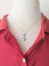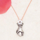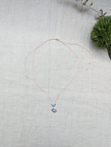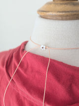 A symbol of love & care, cast from an antique Mexican milagro with mother of pearl flower details. Soft pink nylon, pearl flower button closure. 26" adjustable length.