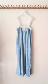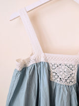 Front and back gathers, cotton lace panel and straps