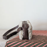 A cute, updated version of the old fanny pack. Made of soft shearling and contrasting brown leather. Boxy construction allows to carry more than expected (it's a little bit bigger than the Porto belt bag). Can be worn over the hip or across the chest or back.