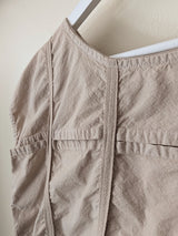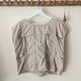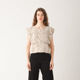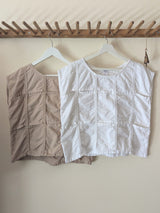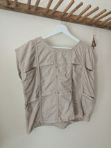 Inspired by parachutes and hang gliders, the Crosswind Top is a distinctive piece that blends texture, movement, and effortless style. Crafted from finished panels of organic cotton muslin, joined with soft cotton tapes, it features a light, airy silhouette that’s both sculptural and wearable. The boxy cut and short cap sleeves make it an ideal warm-weather top — relaxed yet elevated. Pair it with wide-leg pants for a laid-back, artful look that stands out without trying too hard.