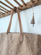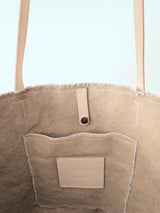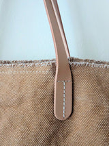 *Due to the artisanal and hand finished nature of the fraying technique you may experience loose threads that make their way out of the unfinished edges up until the stitching around the edge of the bag. Please trim if necessary.