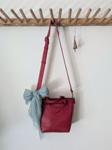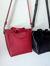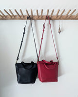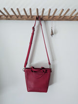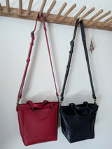 We're bringing back our small bucket tote but this time in a medium weight, soft Italian leather, in a beautiful pepper red color. Now with two outside pockets (one on each side) + one inside pocket. Use the short handles to carry it around at arm length,or wear it as a cross-body, thanks to the removable strap.