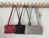 Sweet horizontal tote in very soft yet sturdy Italian leather. Sized to fit just your essentials, such as a wallet, glasses, keys and more. Two large outside pockets to easily access your phone (please check the dimensions) + one small inside credit card pocket.