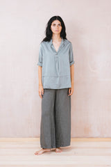 Made in soft but substantial silk cotton satin. This blouse is a longer version of the sunny shirt.