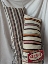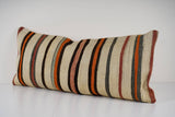 Long Vintage Turkish Kilim Striped Pillow - Orange and Green Stripes