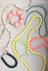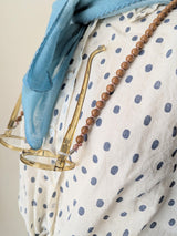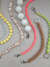 Say bye bye to boring eyeglasses chains! Colorful necklace chain with small painted wooden beads by Berlin designer Ina Seifart.